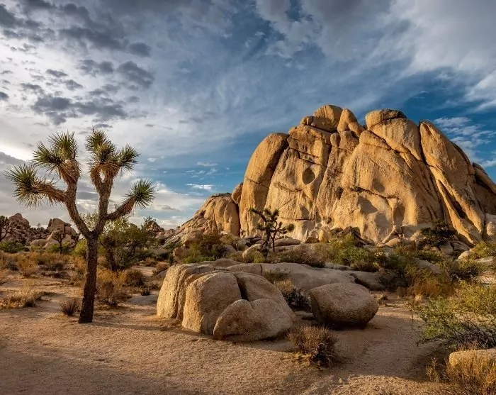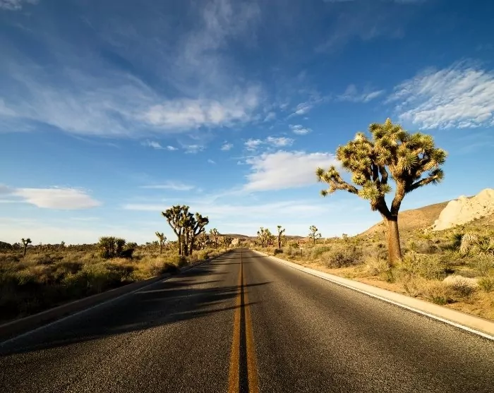 Palm Springsin jälkeen voit ajaa Joshua Treen kansallispuiston läpi ja nauttia ainutlaatuisen karuista aavikkomaisemista, joissa risteilevät loputtomat kaktusrivit.