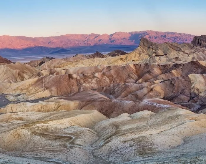 Pysähdy legendaarisella Zabriskie Point -näköalapaikalla, josta avautuvat huikeat näköalat eroosion kuluttamaan maastoon etualalla ja lumihuippuisiin Panamint Mountains -vuoriin taustalla. Vieraile myös Amerikan matalimmassa kohdassa Badwater Basinin suolatasangolla, joka sijaitsee 86 metriä merenpinnan alapuolella.