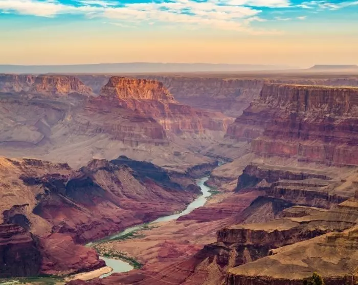 Myöhemmin päivällä saavut Grand Canyonin Arizonassa sijaitsevaan eteläosaan, joka tunnetaan myös nimellä South Rim. Edessäsi on yksi maailman seitsemästä luonnonihmeestä, ja aina siitä hetkestä lähtien, kun auto jää parkkipaikalle, useimpien ihmisten kärsivällisyys tuntuu loppuvan kokonaan. Kaikki nimittäin rientävät suoraa päätä reunaa kohti! Se on helppo ymmärtää, sillä 1,6 kilometriä syvä ja 440 kilometriä pitkä kanjoni on yksinkertaisesti henkeäsalpaava näky, eikä sen suuruutta ja kauneutta voi sanoin kuvailla – se on koettava itse.