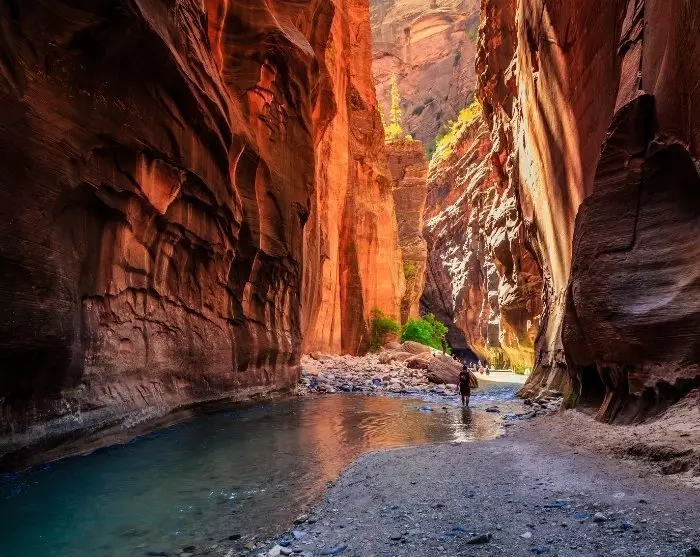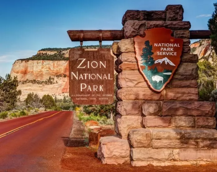 Perillä Zionin kansallispuistossa kannattaa tehdä pysähdys Visitor Centerissä, missä voit tutustua patikkareitteihin, säätilaan ja kuljetusmahdollisuuksiin, joilla pääset itse puiston sisään. Kesäkuukausina voit hypätä ilmaiseen sukkulabussiin ja jäädä pois jollakin suosituista vaellusreiteistä.