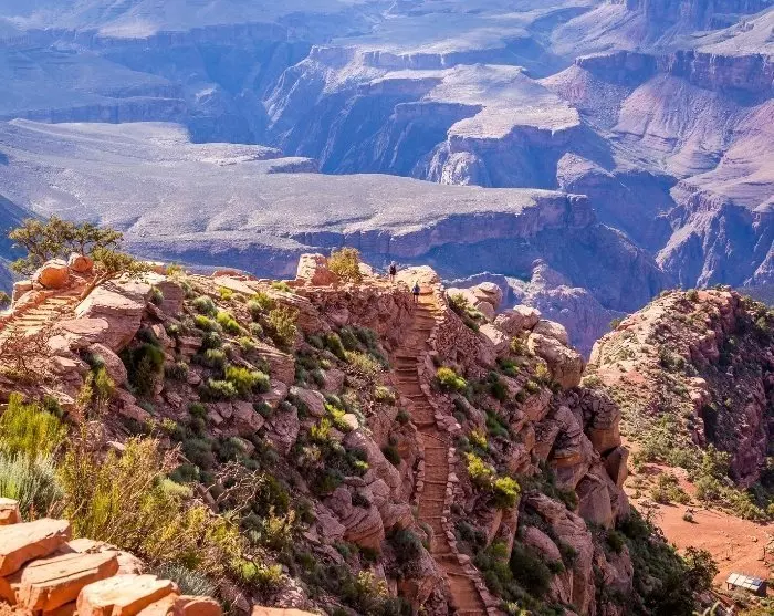 Varhainen aamu – ennen kuin aurinko on nostanut elohopean liian korkealle – on myös parasta aikaa patikoida alas kanjoniin. Yksi hyvä vaihtoehto on suosittu Bright Angel Trail -reitti, joka vie sinut melko lähelle punaisia kallioseinämiä ja tarjoaa runsaasti kauniita näköaloja. Poluilla ei ole harvinaista kohdata petolintuja, vuorikauriita ja aaseja.