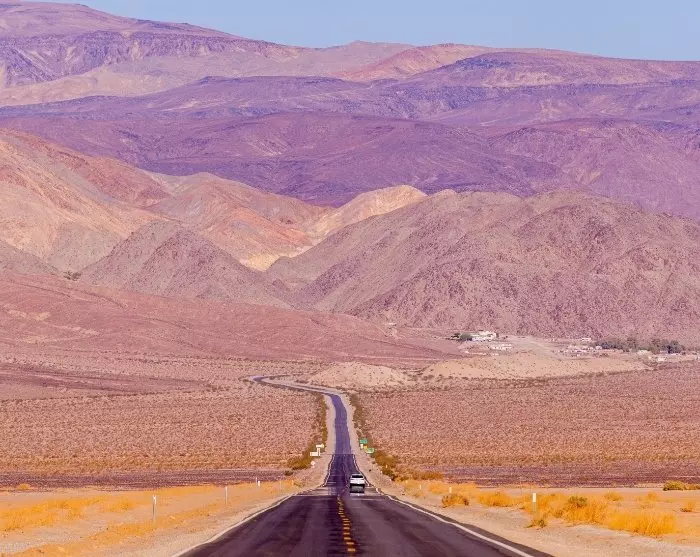 Voit halutessasi ajaa kiertotietä kokeaksesi yhden Amerikan suurimmista kansallispuistoista, Death Valleyn, joka toivottaa sinut tervetulleeksi yli 50 °C:n lämpötiloilla ja karuilla, mutta kauniilla maisemilla.