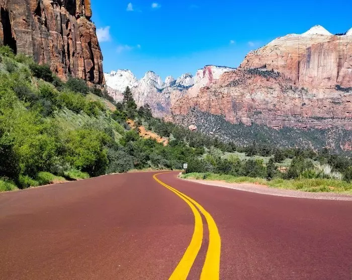 Varaudu myös siihen, että tiedossa on yksi koko matkan kauneimmista ajoreiteistä! Ajat Bryce Canyonista etelän suuntaan ja käännyt Highway 1:lle (UT-9) Mt. Carmel Junctionista päästäksesi Mount Carmel Highwaylle. Mitä lähemmäksi Zionin kansallispuistoa saavut, sitä hienompia ovat näköalat punertaville vuorille ja syviin laaksoihin.