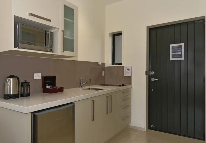 Tilavia vaaleasävyisiä huoneita on 25. Huoneissa on oma kylpyhuone ja hyvin varusteltu minikeittiö, josta löytyy mikroaaltouuni, jääkaappi ja keittolevyt, joten voit helposti valmistaa omat ateriasi.