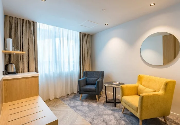 Hotellin sisustus on moderni ja tyylikäs, painottaen mukavuutta ja kestävyyttä. Hotellissa on yhteensä 86 huonetta, joissa jokaisessa on oma kylpyhuone sekä minibaari, tallelokero, smart-TV, kirjoituspöytä, vedenkeitin sekä teen- ja kahvin valmistusvälineet. Luonnollisesti käytössäsi on myös ilmainen WiFi koko oleskelusi ajan.