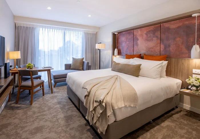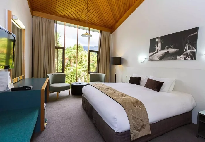 Hotellissa on 227 huonetta ja sviittiä, jotka on sisustettu viihtyisästi ja joista avautuu näkymä joko Rotorua-järvelle tai vehreään puutarhaan. Kaikissa huoneissa on ilmainen WiFi, taulu-LCD-TV, tallelokero sekä teen- ja kahvinkeittovälineet.