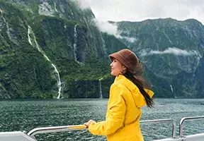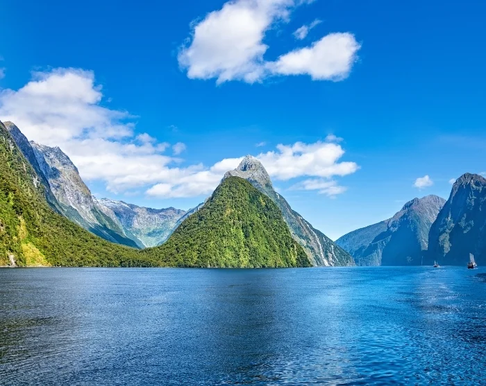 Milford Sound Fiordlandin kansallispuistossa on yksi Uuden-Seelannin tunnetuimmista nähtävyyksistä ja mahdollisesti kaunein luontoelämys, jonka voit kokea matkalla. On vaikea olla vaikuttumatta, kun näkee upean vuonon pystysuorat kalliot, pauhaavat vesiputoukset ja tiheät sademetsät.