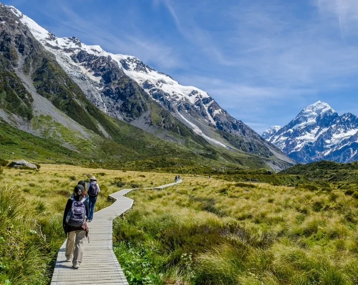 Mount Cook Village on todellinen vaeltajien ja luonnonystävien paratiisi. Tarjolla on useita eri pituisia ja tasoisia vaellusreittejä, kuten Kea Point Track (helppo, noin 3 km), Tasman Glacier View Track (helppo, noin 2,5 km) ja Hooker Valley Track (helppo, noin 10 km). Huomioithan kuitenkin, että Hooker Valley Track on osittain suljettu eroosion sekä uuden riippusillan rakentamisen takia vuoteen 2026 saakka.