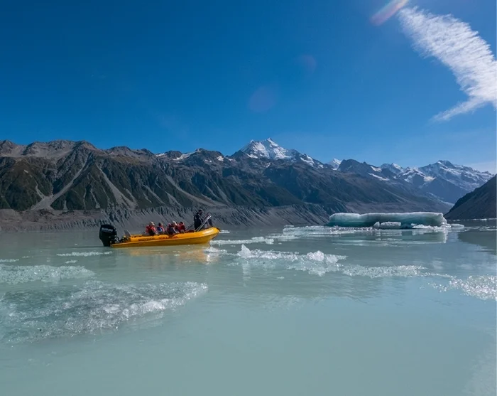 Ennen kuin lähdet Aoraki/Mount Cookin kansallispuistosta, suosittelemme varaamaan etukäteen veneretken Tasman-järvellä. Tällä retkellä pääset aivan lähelle pieniä jäävuoria sekä vaikuttavaa Tasmanin jäätikköä, joka on Uuden-Seelannin suurin. Alueen upeita maisemia voi myös ihailla ilmasta käsin helikopterilennolla, mikäli sää sallii. Suosittelemme kuitenkin varaamaan helikopteriretken vasta paikan päällä heti alueelle saavuttuasi, jotta sinulla on paras mahdollisuus varmistaa paikkasi – etenkin, jos tämä on kokemus, jota et halua jättää väliin.