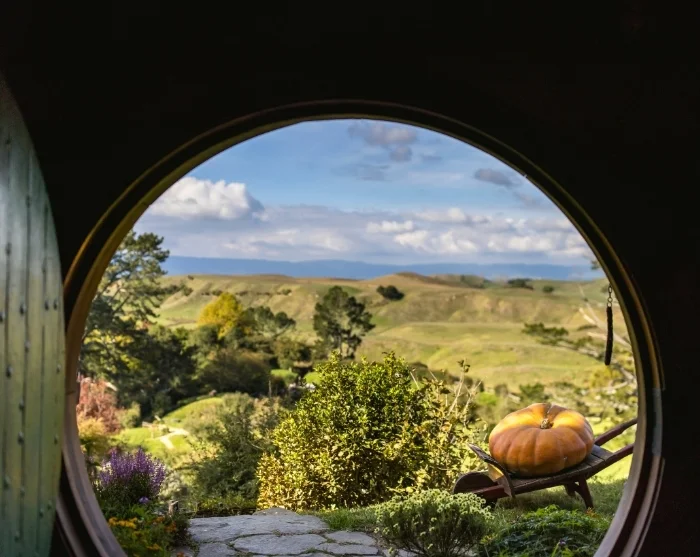 Aucklandista matka jatkuu minibussilla ja paikallisoppaan johdolla Rotoruaa kohti vehreiden maisemien läpi Waikaton alueelle, joka tunnetaan yhtenä maan suurimpana maatalousalueena. Täällä sijaitsee Hobbiton Movie Set, jonka lavasteet ovat tuttuja Taru sormusten herrasta- ja Hobitti-elokuvista.