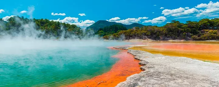 Matkan varrella on mahdollisuus omakustanteisiin lounas- ja kahvitaukoihin ennen siirtymistä Wai-O-Tapuun. Täällä luonnonvoimat ovat luoneet värikkään ja kiehtovan geotermisen maiseman, johon kuuluu muun muassa Champagne Pool, kraatterijärviä ja maasta nousevaa rikkihöyryä. Tuntuu melkein siltä kuin olisi toisella planeetalla, ja rikkivedyn tunnusomainen haju kuuluu elämykseen. Päivän päätteeksi saavut Rotoruaan (Te Rotorua-nui-a-Kahumatamomoe), jossa ilta on vapaa ja voit tutkia kaupunkia omatoimisesti.
