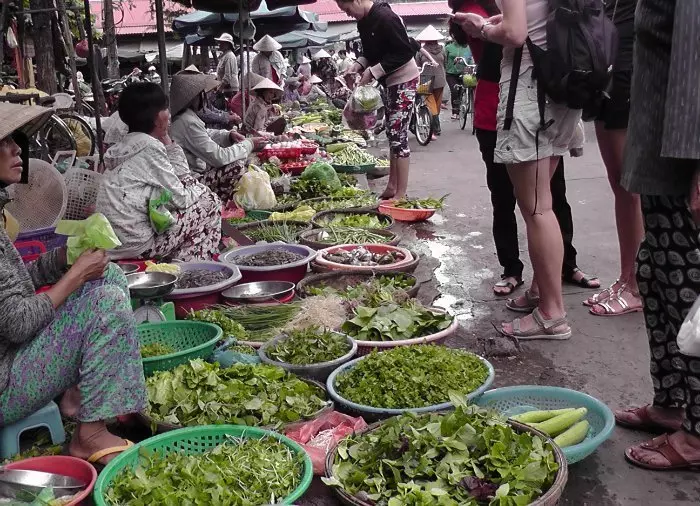 Päivän aluksi tapaat paikallisen kokin, joka vie sinut ostoksille paikalliselle torille. Torilta ostetaan päivän ruokalajeihin tarvittavat ainekset. Kokki kertoo samalla sekä valmistettavista ruokalajeista että hieman myös vietnamilaisen keittiön historiasta.