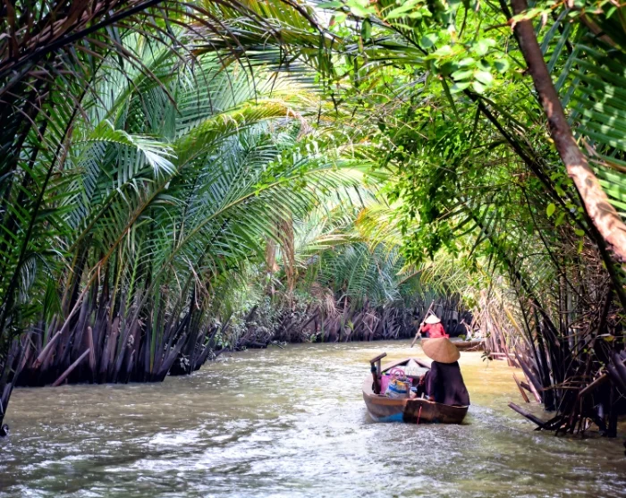 Osaksi veneellä tehtävällä kokopäiväretkellä voit tutustua myös Mekongin suistoalueeseen. Rehevä ja hedelmällinen Mekong-joen suisto on laajuudeltaan noin 40000 m2, josta suurin osa on veden peitossa. Mekong virtaa alkulähteiltään 4500 kilometrin matkan kuuden maan läpi, kunnes se saapuu suistoonsa Ho Chi Minhin kaupungin eteläpuoliselle rannikolle. Veneretkellä vieraillaan myös paikallisten käsityöläisten luona ja pienviljelijöiden tiluksilla, esimerkiksi kookospähkinäplantaasilla.