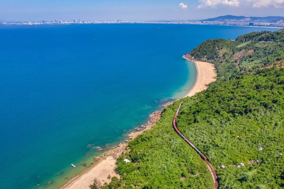 Heräät kauniisiin näkymiin junan kulkiessa pitkin rannikkoa. Ikkunasta voit nähdä vihreät vuoret ja upean sinisen meren.