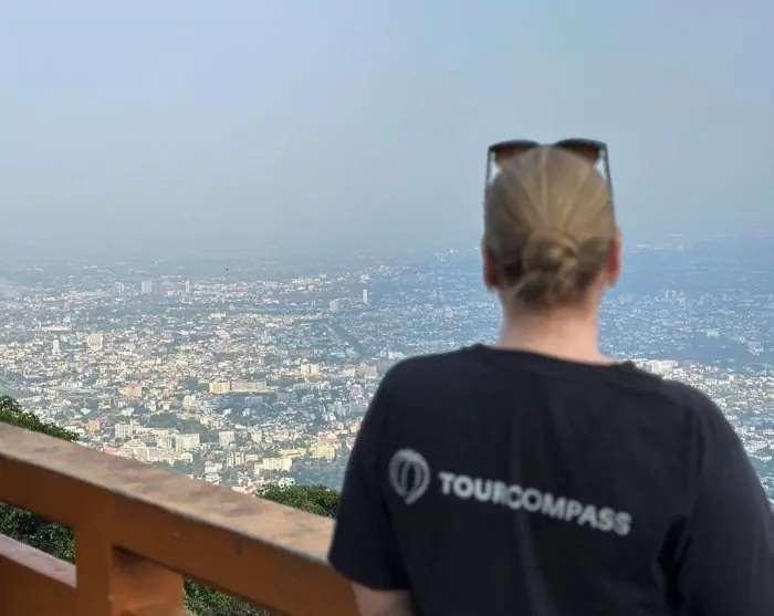 Koneen laskeuduttua kuljet passintarkastuksen läpi ja noudat matkatavarasi. Oppaasi odottaa tuloaulassa. Tunnistat oppaan helposti, sillä hänellä on yllään TourCompass-univormu ja kädessään TourCompass-kyltti. Sinut kuljetetaan hotelliisi, joka sijaitsee Chiang Main keskustassa.
