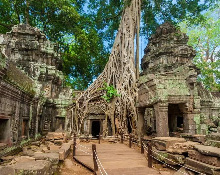 Heräät aikaisin, koska tänään tulet kokemaan yhden maailman suurimmista nähtävyyksistä: raunioituneen Angkor-kaupungin, joka on UNESCOn maailmanperintöluettelossa. Angkor oli alun perin Khmerin valtakunnan pääkaupunki, ja kaupunki sijaitsee vain 5 km Siem Reapista pohjoiseen, jonne sinut kuljetetaan oppaasi kanssa.