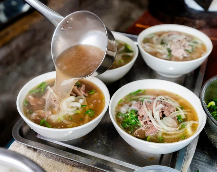 Nälän yllättäessä voit suunnata Hanoihin lukuisille katuruokakojuille, joissa on mahdollisuus maistaa paikallisia herkkuja, kuten pho-nuudelikeittoa, bun cha -grillattua sianlihaa riisinuudeleiden kera sekä banh mi -vietnamilainen voileipä.