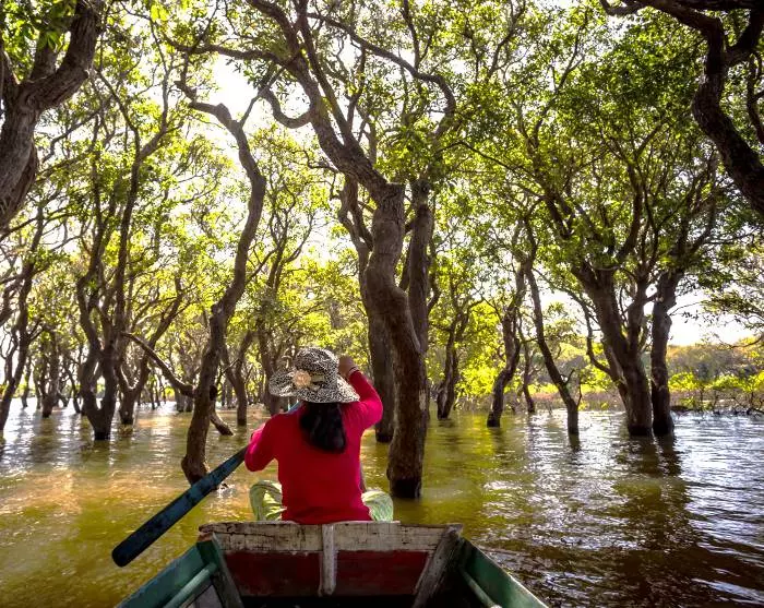Saavut Tonlé Sap -joen rannalle ja nouset veneeseen, joka vie sinut yhteen järven kelluvista kylistä. Täällä voit nähdä lähietäisyydeltä, millaista elämä on monissa perheissä, jotka saavat ensisijaisesti elantonsa kalastuksesta. Perheet asuvat rannalla värikkäissä taloissa, jotka on rakennettu korkeiden tukijalkojen päälle, jotta ne selviävät veden ollessa korkealla sadekauden aikana (elokuusta helmikuun alkuun), jolloin kylän kapeat kadut muuttuvat pieniksi kanaaleiksi. Kuivana kautena (helmikuun puolivälistä heinäkuuhun) veden ollessa matalammalla on helppo nähdä korkeat tukijalat.