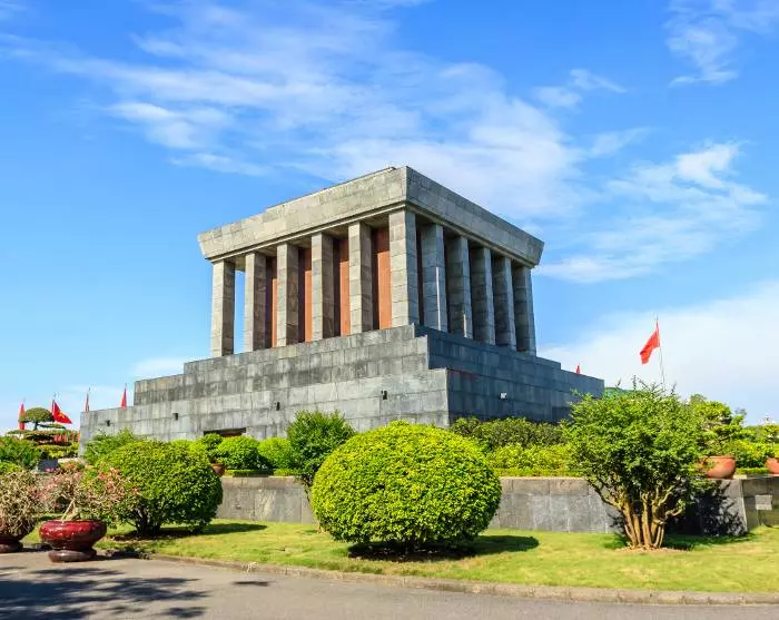 Jatkat sitten Ho Chi Minh Mausoleumin ohi Ba Dinh -aukiolle. Tämä on täydellinen tilaisuus ihailla tätä merkittävää maamerkkiä ulkopuolelta.