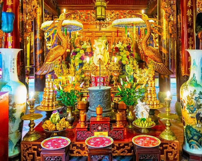 Pysähdyt myös pienessä Bach Ma -temppelissä, joka sijaitsee Hanoin Old Quarterissa. Temppelin sanotaan olevan Hanoin vanhin, ja sen pystytti keisari Ly Thai To kunnianosoitukseksi valkoisen hevoselleen, jolla oli keskeinen rooli Hanoin perustamisessa. Temppeli tunnetaan perinteisestä vietnamilaisesta arkkitehtuuristaan, jossa on vaikuttavia puukaiverruksia ja monimutkaisia yksityiskohtia.