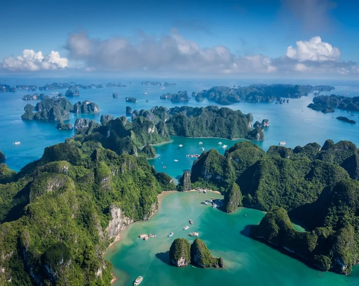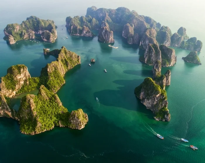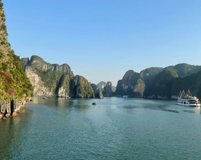 Seuraavaksi suuntaat kohti itää ja legendaarista Halonginlahtea, missä odottaa miniristeily. Seilaat satojen vihreiden karstisaarten lomassa, vierailet helmenviljelytilalla, tutkit yhtä lahden suurimmista luolista ja voit meloa kajakilla – tiedossa on maailmanluokan luontoelämys.