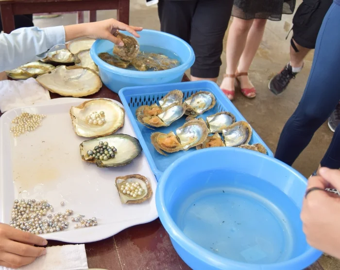Myöhemmin alus pysähtyy helmenviljelytilalla, jossa voit tutustua perinteiseen helmenviljelyyn. Täällä voit myös hypätä kajakkiin ja lähteä leppoisalle melontaretkelle luonnonkauniisiin maisemiin.
