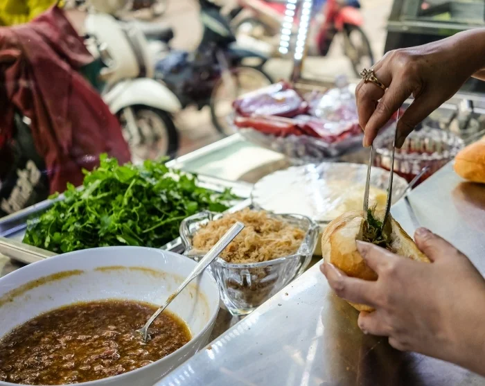 Lounasaikaan voit etsiä kivan ruokapaikan Hanoin monien streetfood-kojujen joukosta. Tilaa höyryävä pho-kulhollinen, nuuski grillatun bun chan tuoksuja tai nappaa evääksi rapea banh mi.