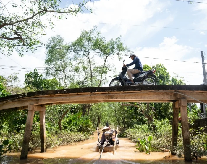 Seikkailet myös Mekongin suisto, missä risteilet rehevän suiston läpi ja tutustut paikallisiin käsityöperinteisiin. Pienellä saarella nautit kotitekoisen lounaan, ja Vinh Longin kylässä tapaat paikallisia asukkaita ja opit kestävän ja sosiaalisen kehityksen projektista, jota tuet valitsemalla tämän matkan.