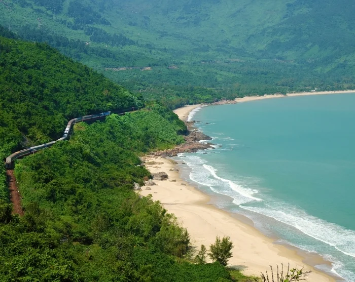Heräät upeaan näkymään, kun juna kiemurtelee pitkin rannikkoa ja läpi luonnonkauniin Van Hai -solan.